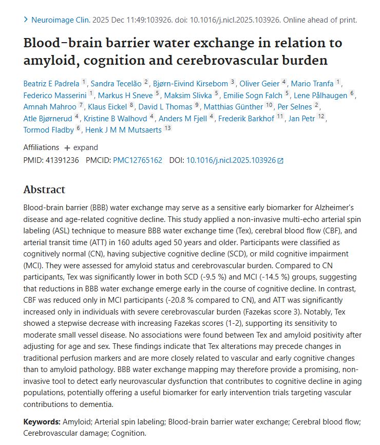 Das Verständnis der frühesten Veränderungen im alternden Gehirn ist essenziell für die Entwicklung wirksamer Interventionen gegen Alzheimer und vaskuläre kognitive Beeinträchtigungen. Eine kürzlich veröffentlichte Studie mit Beiträgen von Prof. Matthias Günther und einem internationalen Forscherteam beleuchtet einen vielversprechenden Biomarker: den Wasseraustausch an der Blut-Hirn-Schranke (BHS). Mithilfe einer nicht-invasiven Multi-Echo-Arterial-Spin-Labeling-Technik (ASL) untersuchte die Studie 160 Erwachsene ab 50 Jahren in verschiedenen kognitiven Stadien.