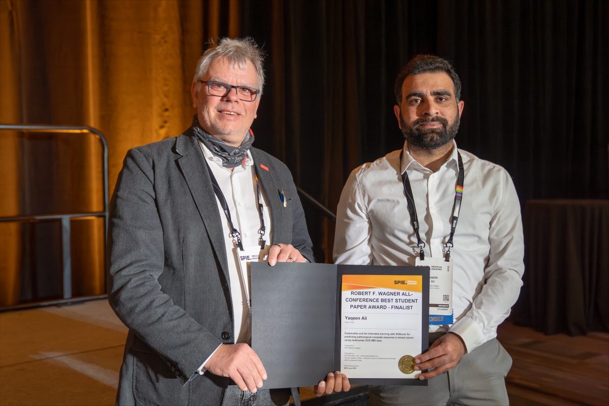 Besonders stolz sind wir darauf, dass eine dieser Arbeiten als Finalist für den Robert F. Wagner All-Conference Best Student Paper Award der SPIE Medical Imaging ausgewählt wurde – eine herausragende Anerkennung.